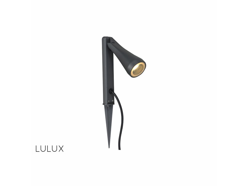 Moderné svietidlo vhodné do exteriéru vyrobené z hliníku. Vďaka pridanému klinu je svietidlo určené na zapichnutie do zeme. V sérii so stojacím a nástenným externým svietidlom. Prezrite si našu ponuku. Žiarovka nie je súčasťou balenia. Prikúpte si ju na našej stránke https://www.lulux.sk/kategoria/ziarovky-patica-gu10/.O výrobcovi