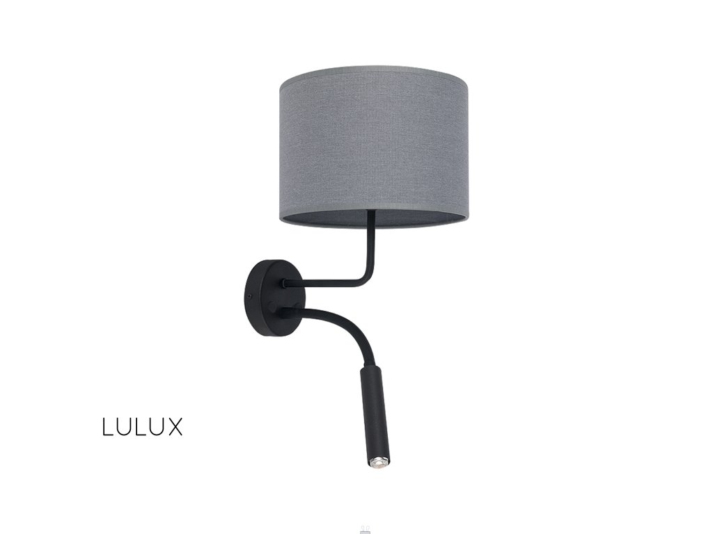 Svietidlo v šedej farbe s prídavným svetelným bodom na pohyblivom ramene