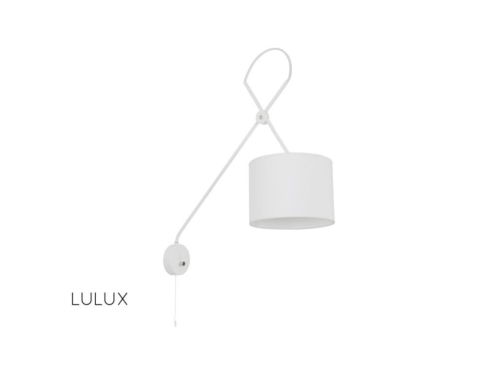 Lampa s textilným tienidlom a nastaviteľným ramenom. V sérii so stropným svietidlom. Žiarovka nie je súčasťou balenia, prikúpite si ju na našej stránke.