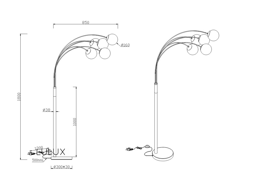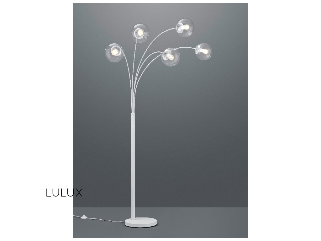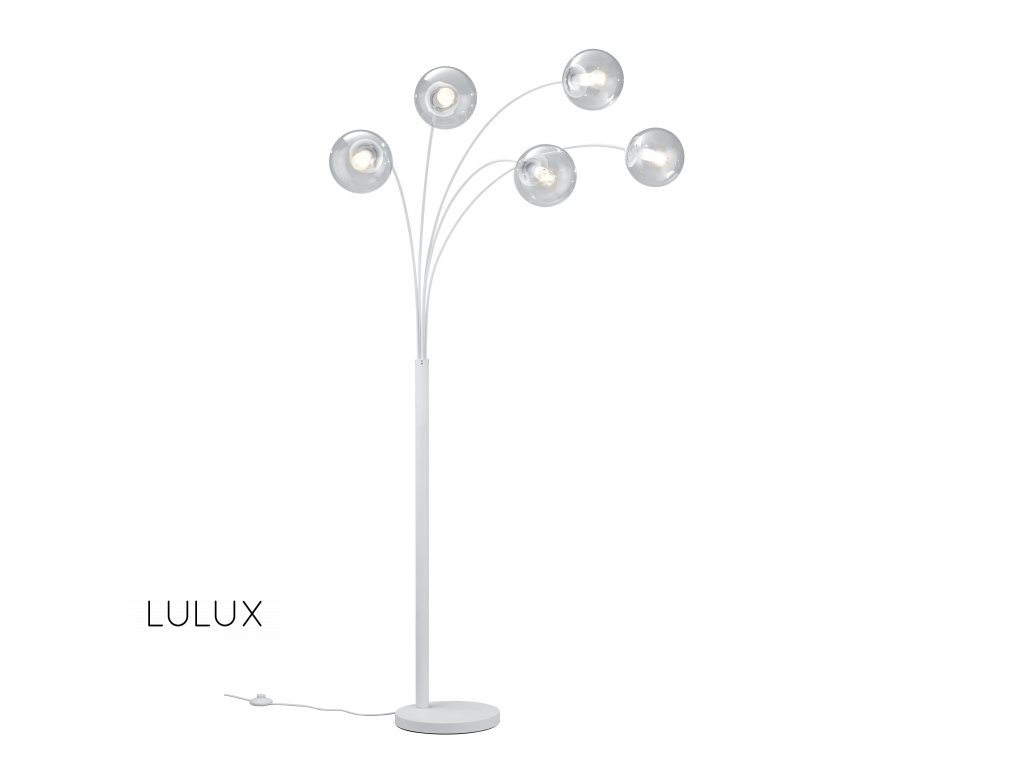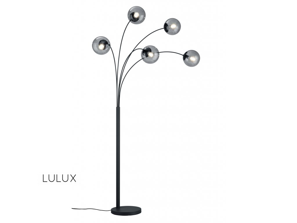 Stojaca lampa s piatimi tienidlami s dymového alebo priehľadného skla. Svietidlo je vhodné do moderných interiérov, napríklad vedľa sedačky v obývacej izbe. Svietidlo je prispôsobené pre päť žiaroviek s päticou E14. Vzhľadom na priehľadnosť tienidla odporúčame použiť filamentové žiarovky. Žiarovka nie je súčasťou balenia.